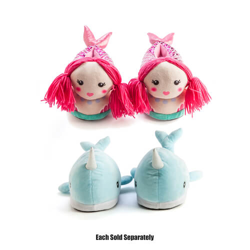 Você colocará o pé dentro da sereia ou Narwhal para calçados de sereia-y ou narizes para passear pela casa ... Sim, você provavelmente irá passear, você não poderá se ajudar neles! Os designs fofos são tridimensionais e têm detalhes doces como cabelos de fios (na sereia, é claro) e uma buzina saliente (aquela que está no Narwhal apenas para o caso de você estar se perguntando!).