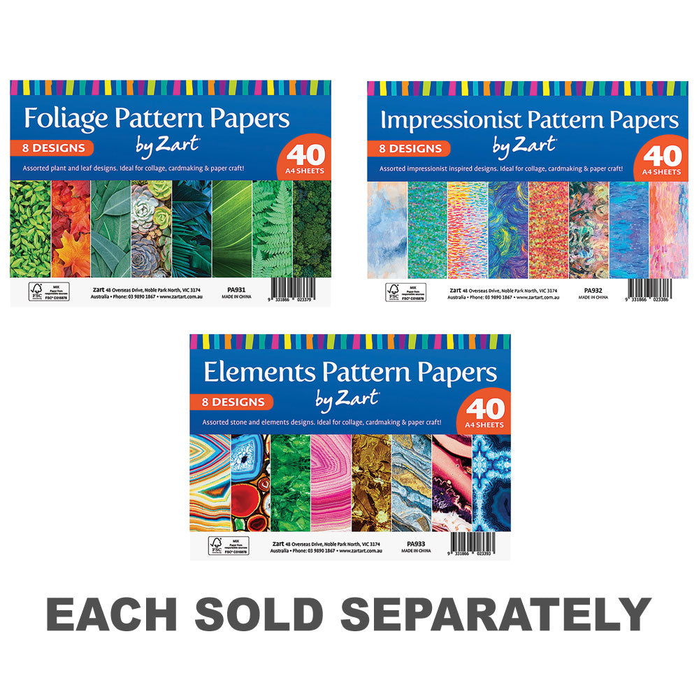 - Total pack contains 40 sheets (5 copies of each of the 8 designs)