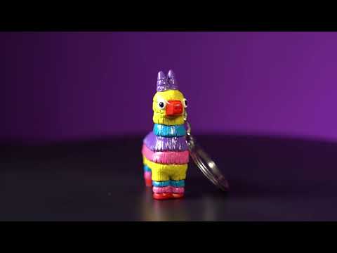 Funky Llama Pinata Keychain! Apresenta uma llama colorido com faixas de estilo marginal em um anel tradicional de chaveiro. Bonito e estranho, a maneira perfeita de expressar seu pessoal. estilo