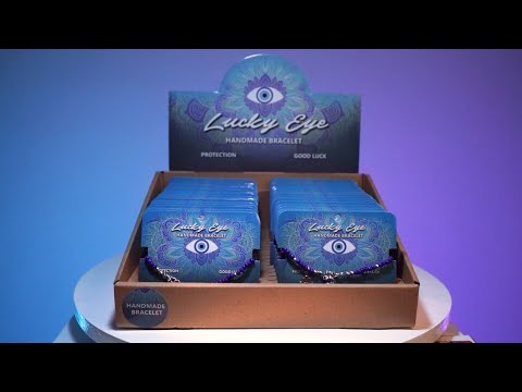 Pulseira de miçangas azuis com um charme de borla e hamsa.