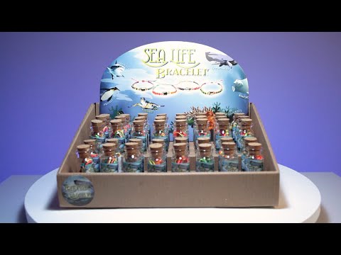 - Aufbewahrt in einer kleinen Glasflasche mit Korkstopfen und Sea Life-Etikett.