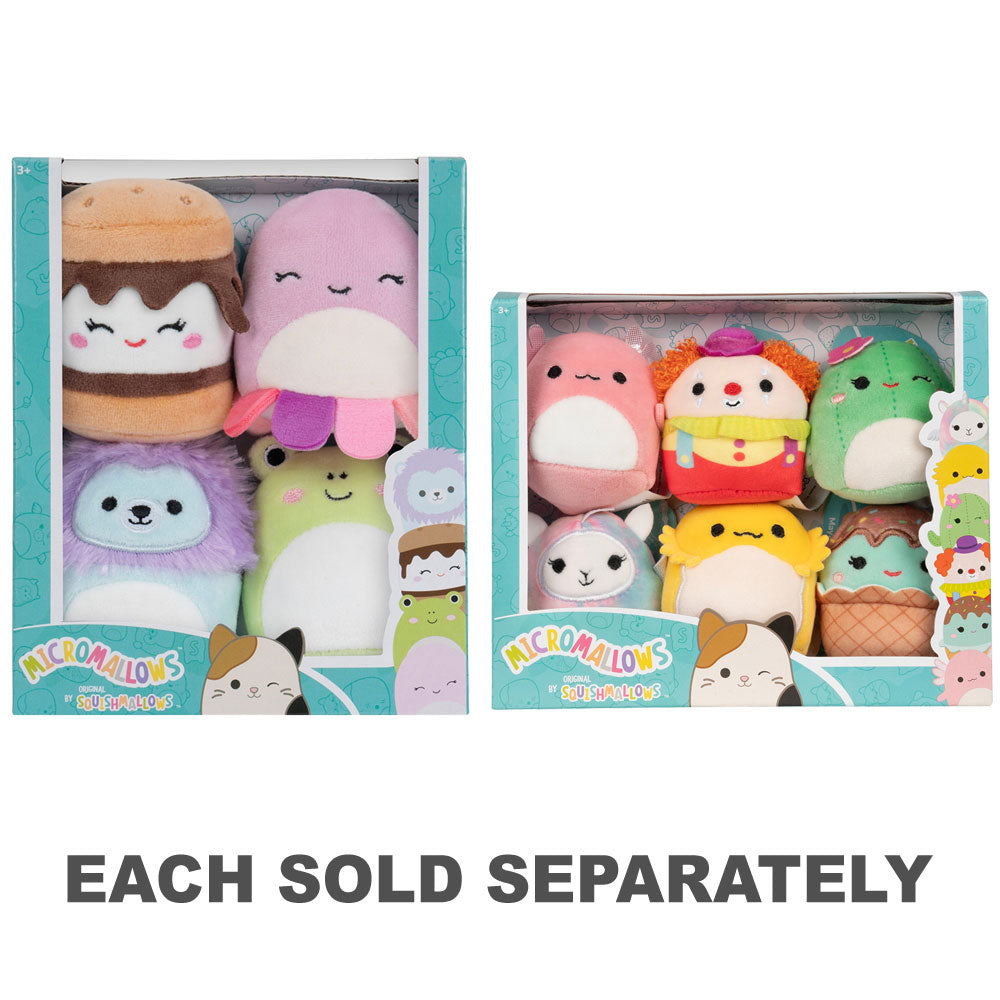 Micromallows are tiny but mighty! This Micromallows plush 4-Pack includes Squishmallows favourites! Style and display your new micro besties with Accessory Sets—like the Game On carnival pack—or the Micromallows Display Ferris Wheel! Only by Original Squishmallows. Join the Squad!
