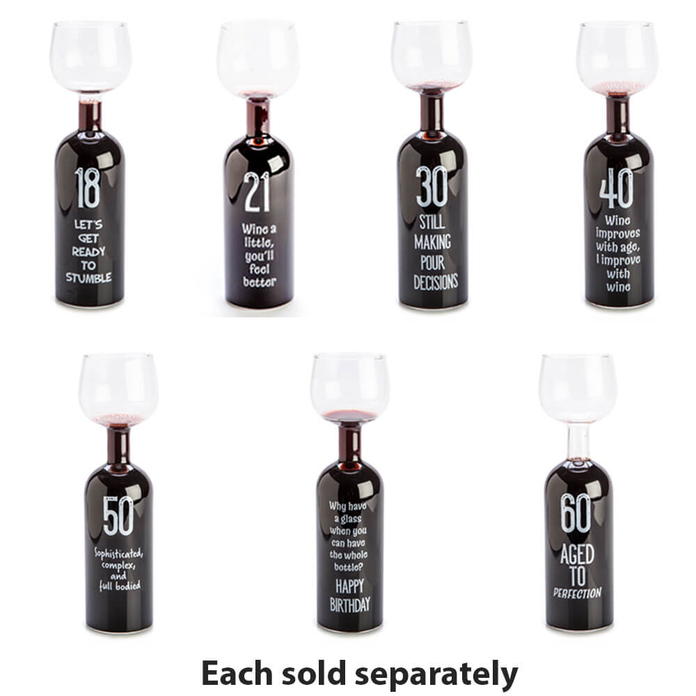 Esta combinación única de vaso y botella está elaborada con estilo, por lo que encaja perfectamente con la decoración de tu cena. ¡Tus invitados hablarán de ello toda la noche! Compre una copa de botella de vino Happy Birthday para su amante del vino favorito; jefe, esposa o ese amigo difícil de complacer cuyo cumpleaños se acerca...