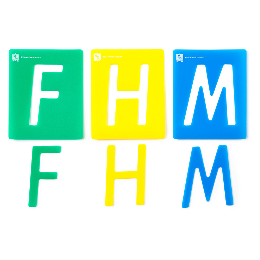 Measuring 75mm x 45mm, each stencil is meticulously designed for clarity and precision. Dive into a world of creativity and learning with this essential stencil set.